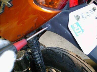 次にリアスポイラーを外しましょう。 ”ZX”のパネルは裏からドライバー等で持ち上げると簡単に外れます、外したらそこにはボルトが隠れてます。 あとは外すだけ |