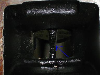 下から見た排気ポート 定規で適当に測った数値だけど、ポートの高さは大体24mm。 形状はポートの頭がドーム型になってて低速トルクをカバーしてます。 |